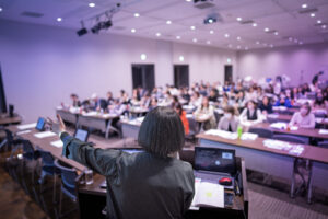 会場開催だからこそできる、講師への直接質問や参加者同士のネットワーキング。展示企業ともゆっくり話せます。
